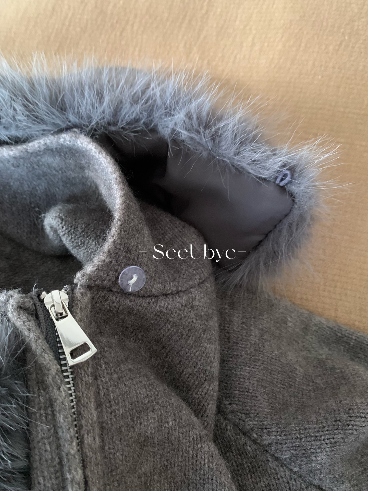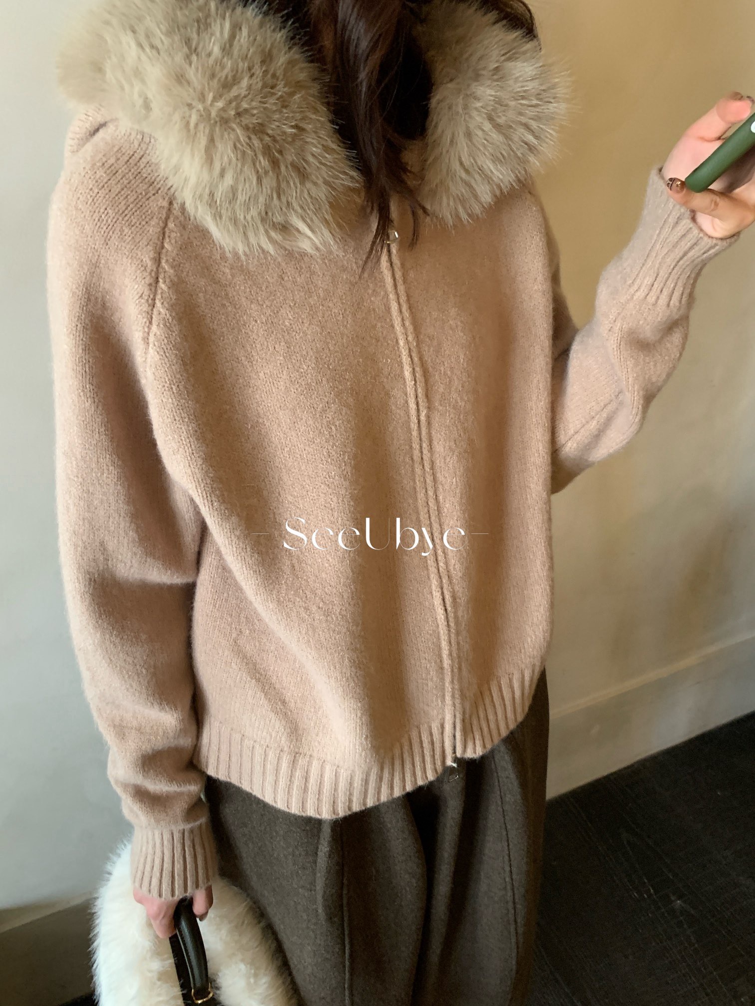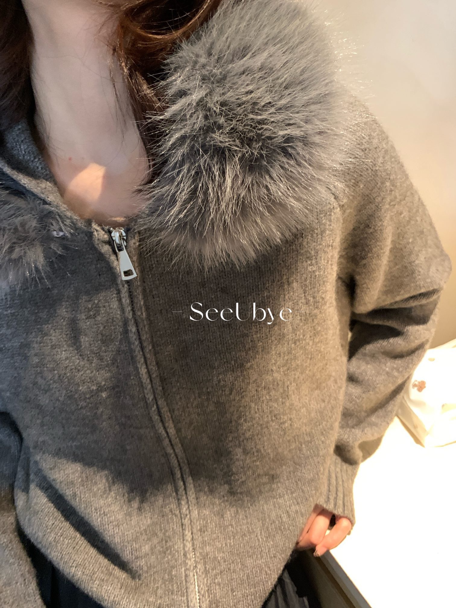 25711#連帽拉鏈毛衣(毛領可拆)