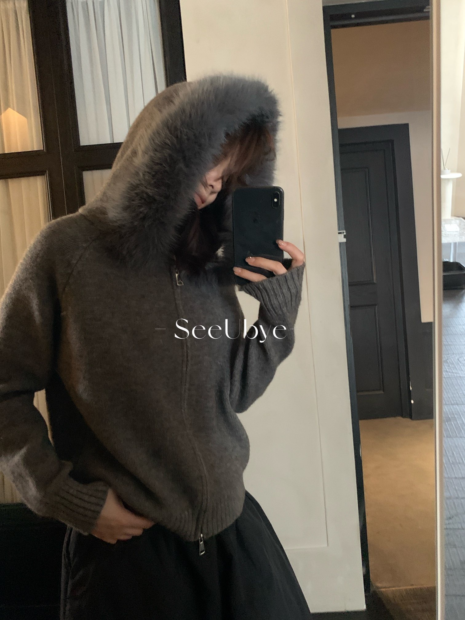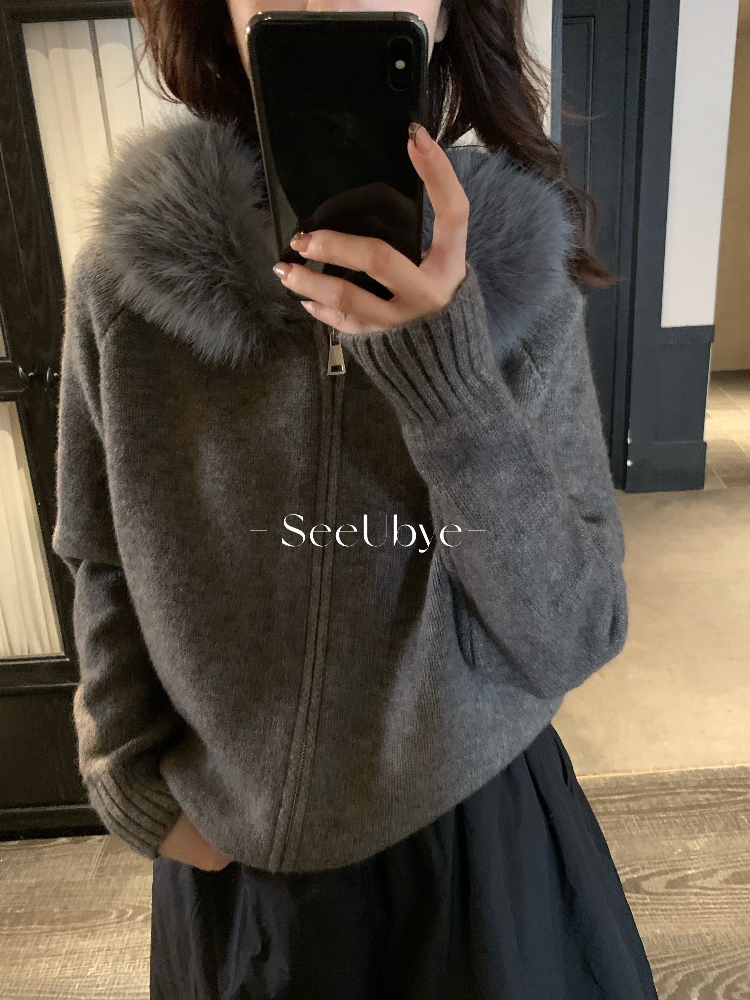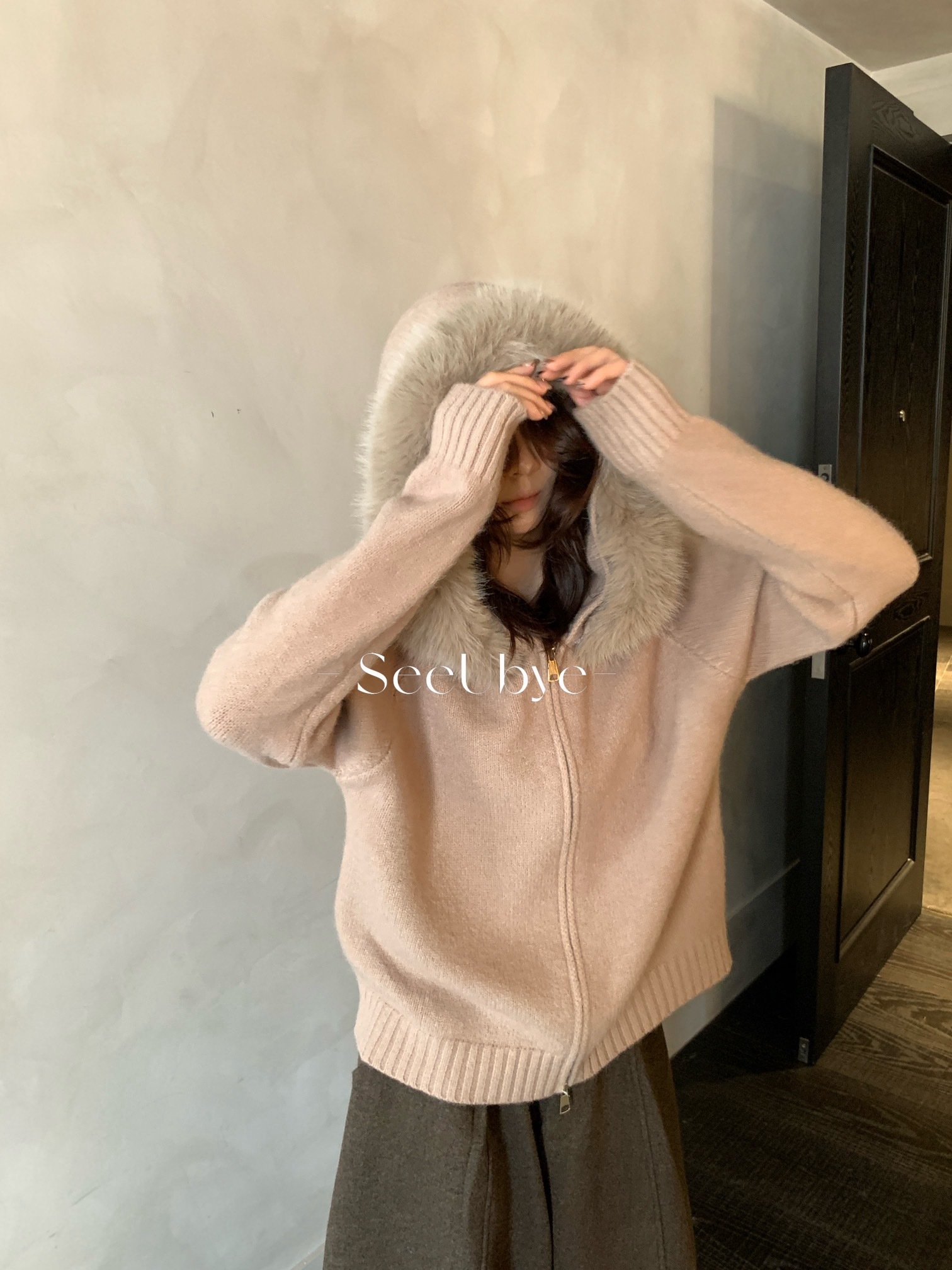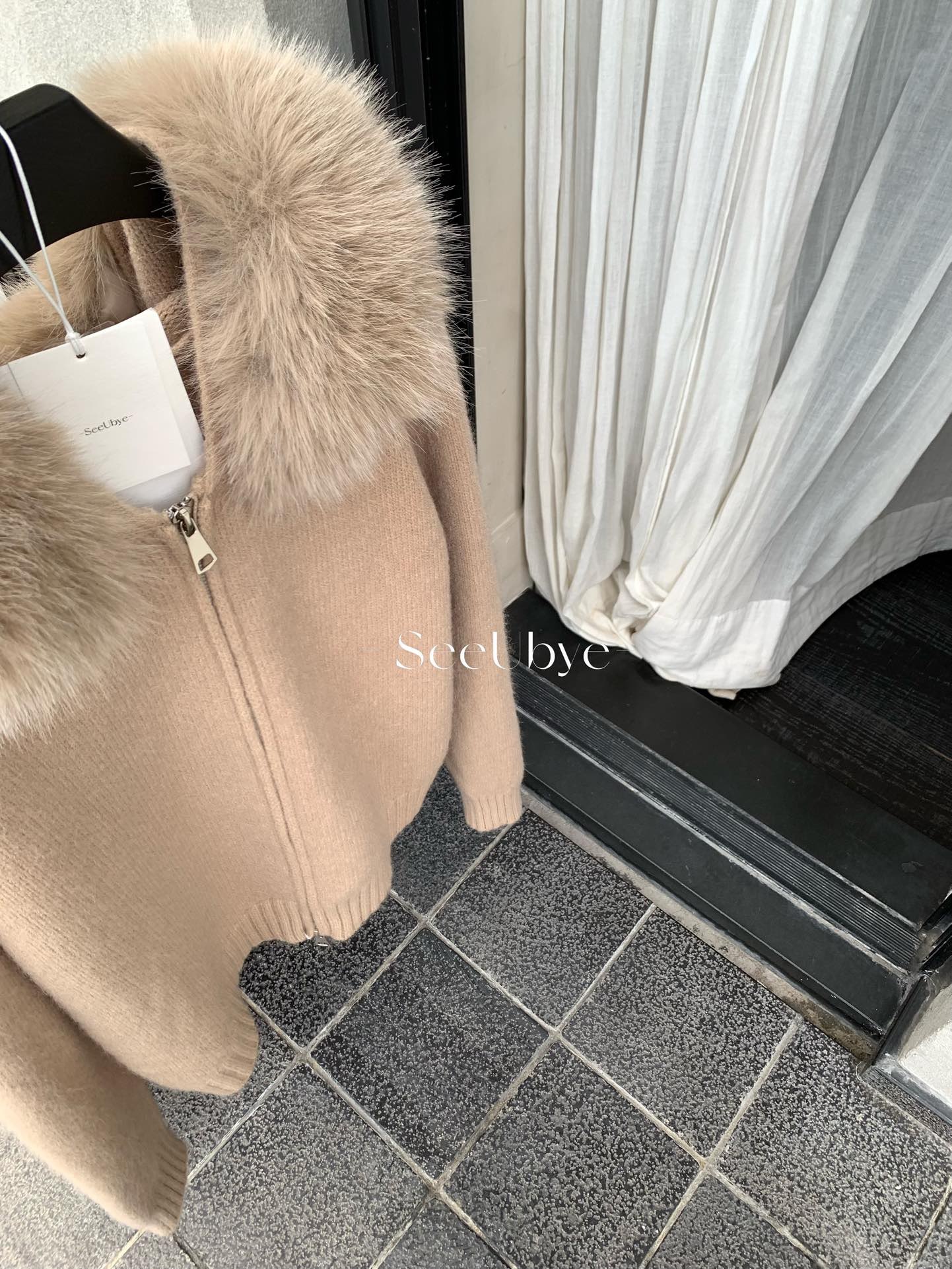 25711#連帽拉鏈毛衣(毛領可拆)