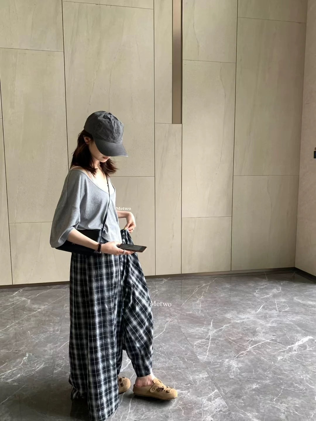 格子休閒褲