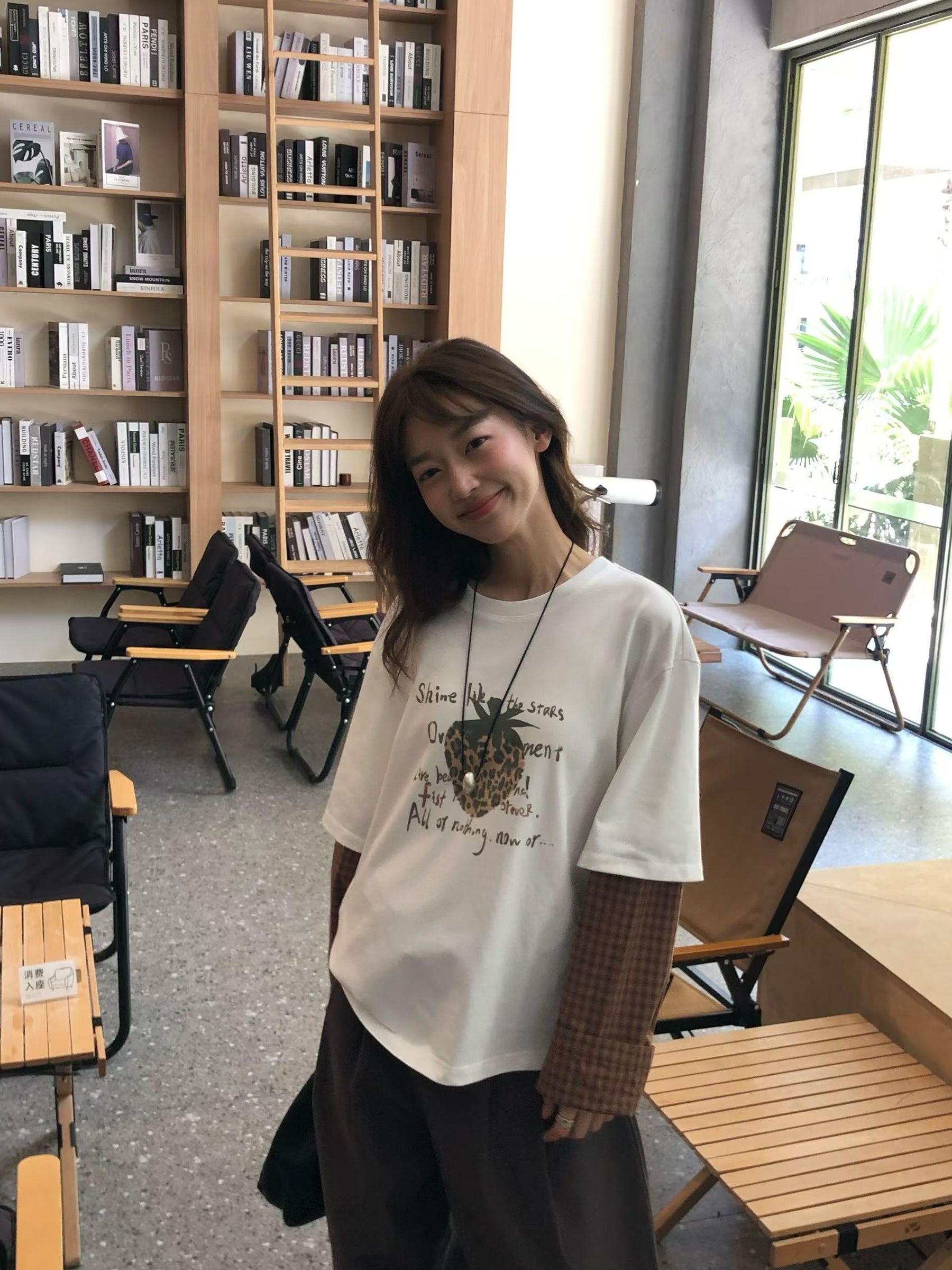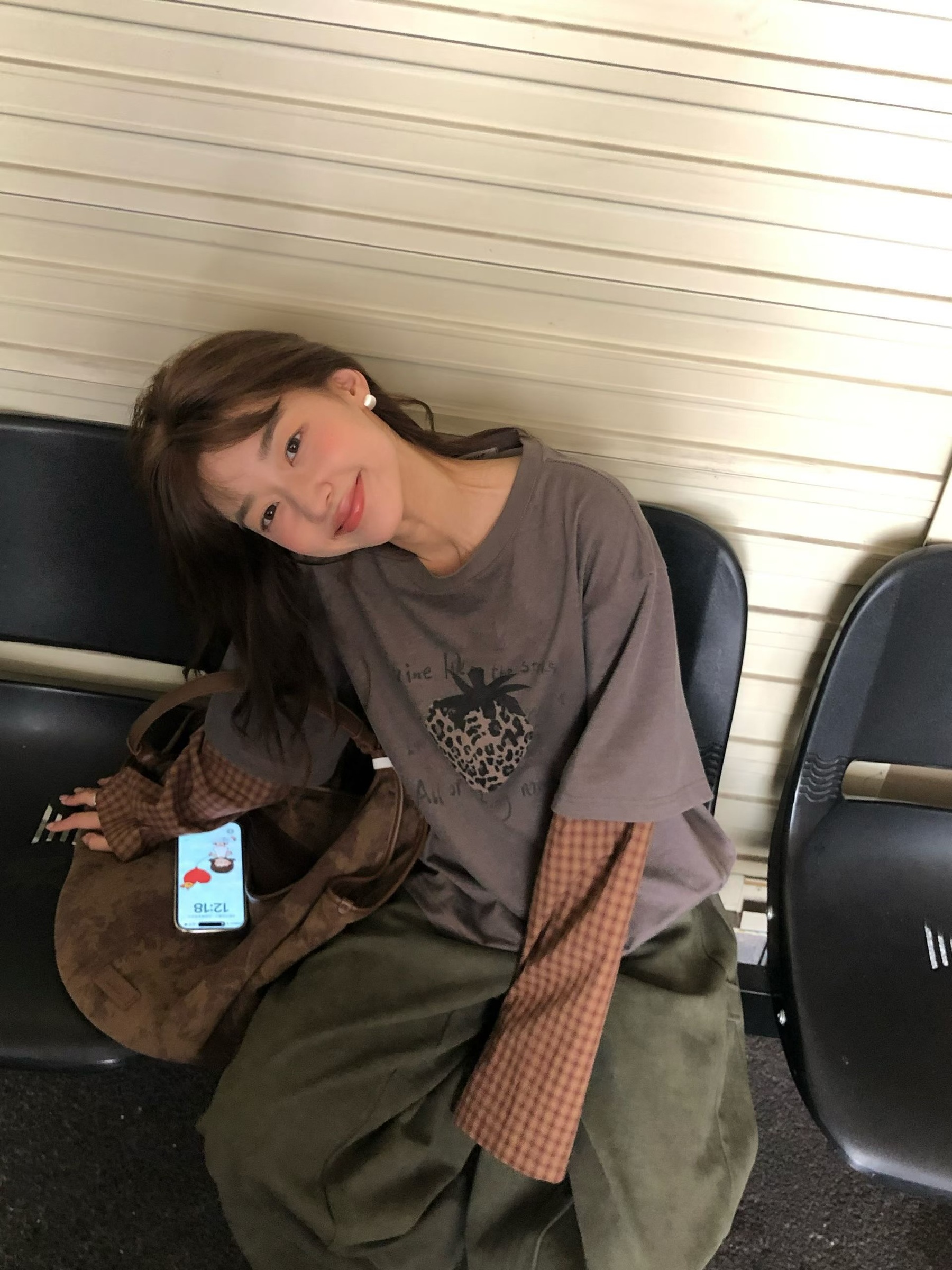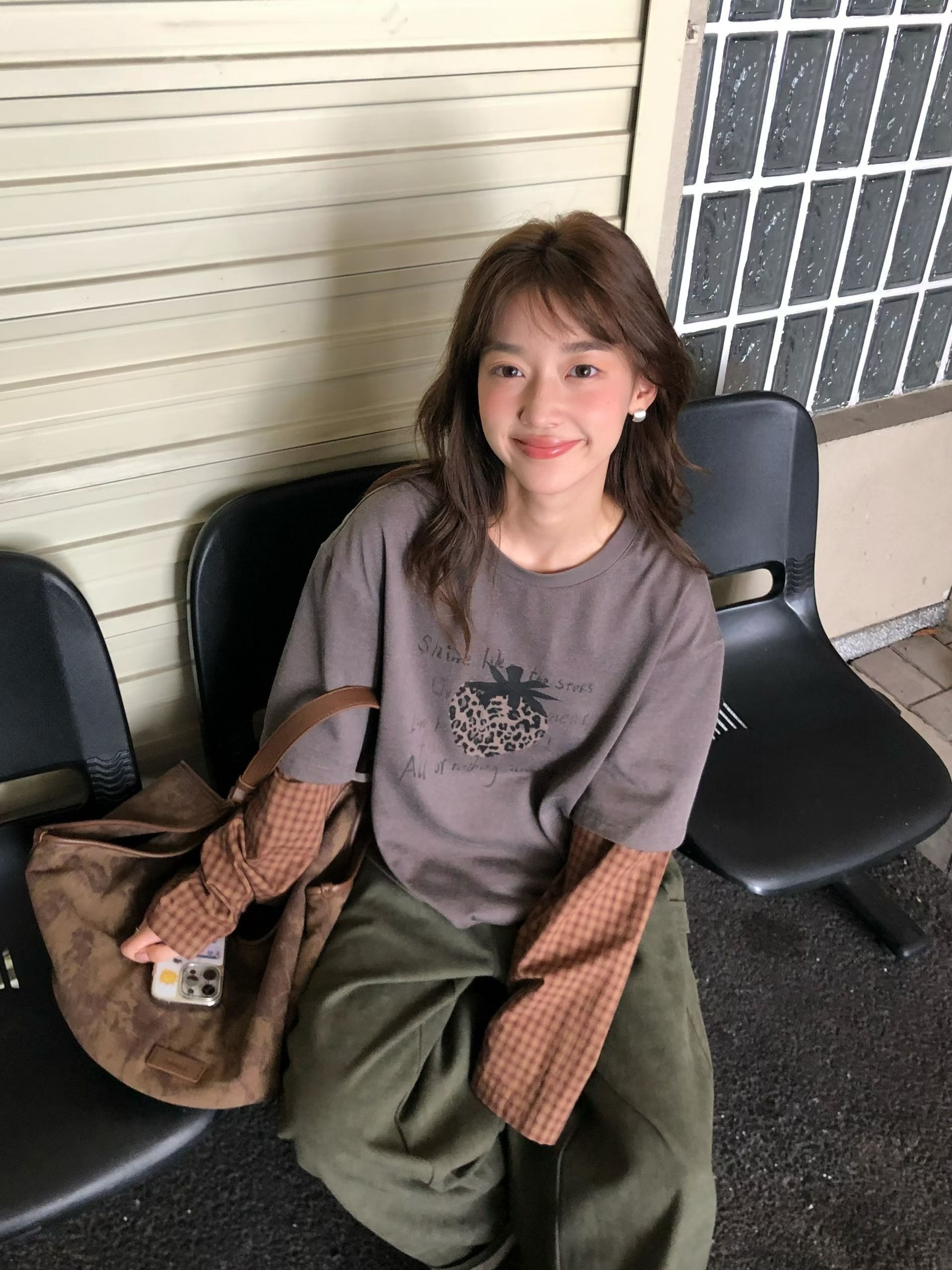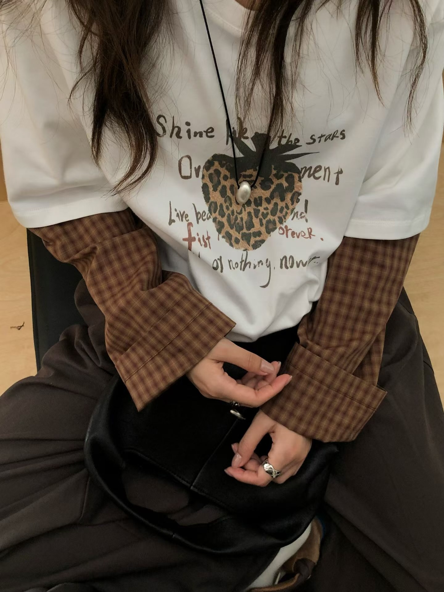 AQ2595#正韓假兩件豹紋草莓t(2色)