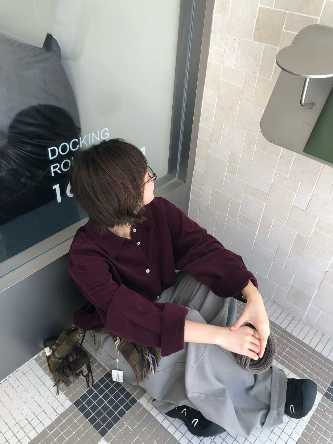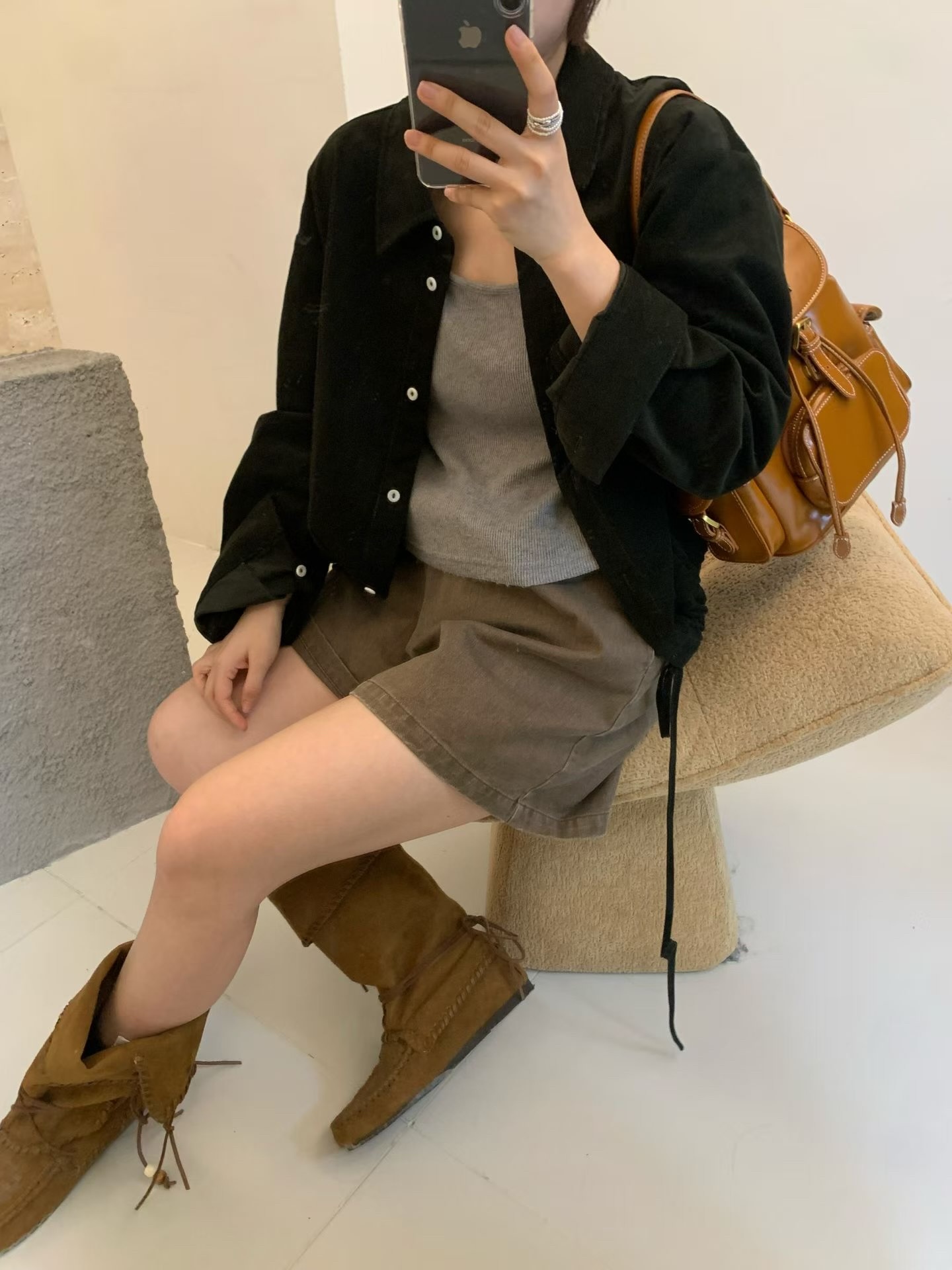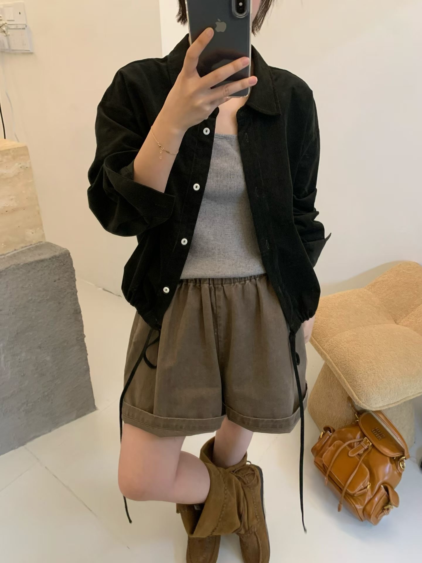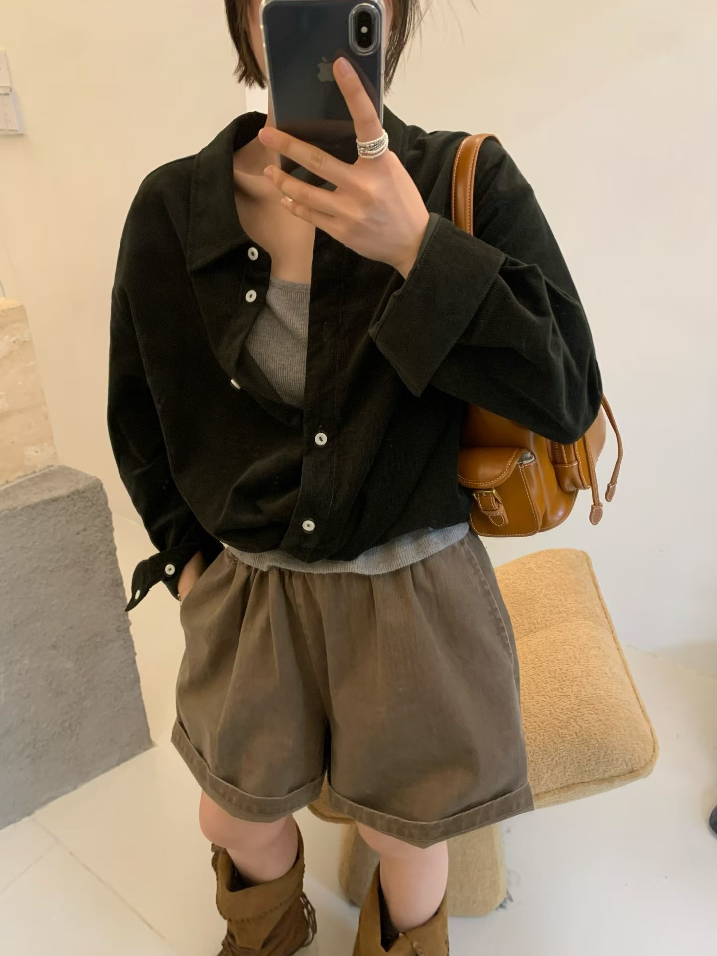 BQ2581#正韓燈芯絨短版襯衫(2色)