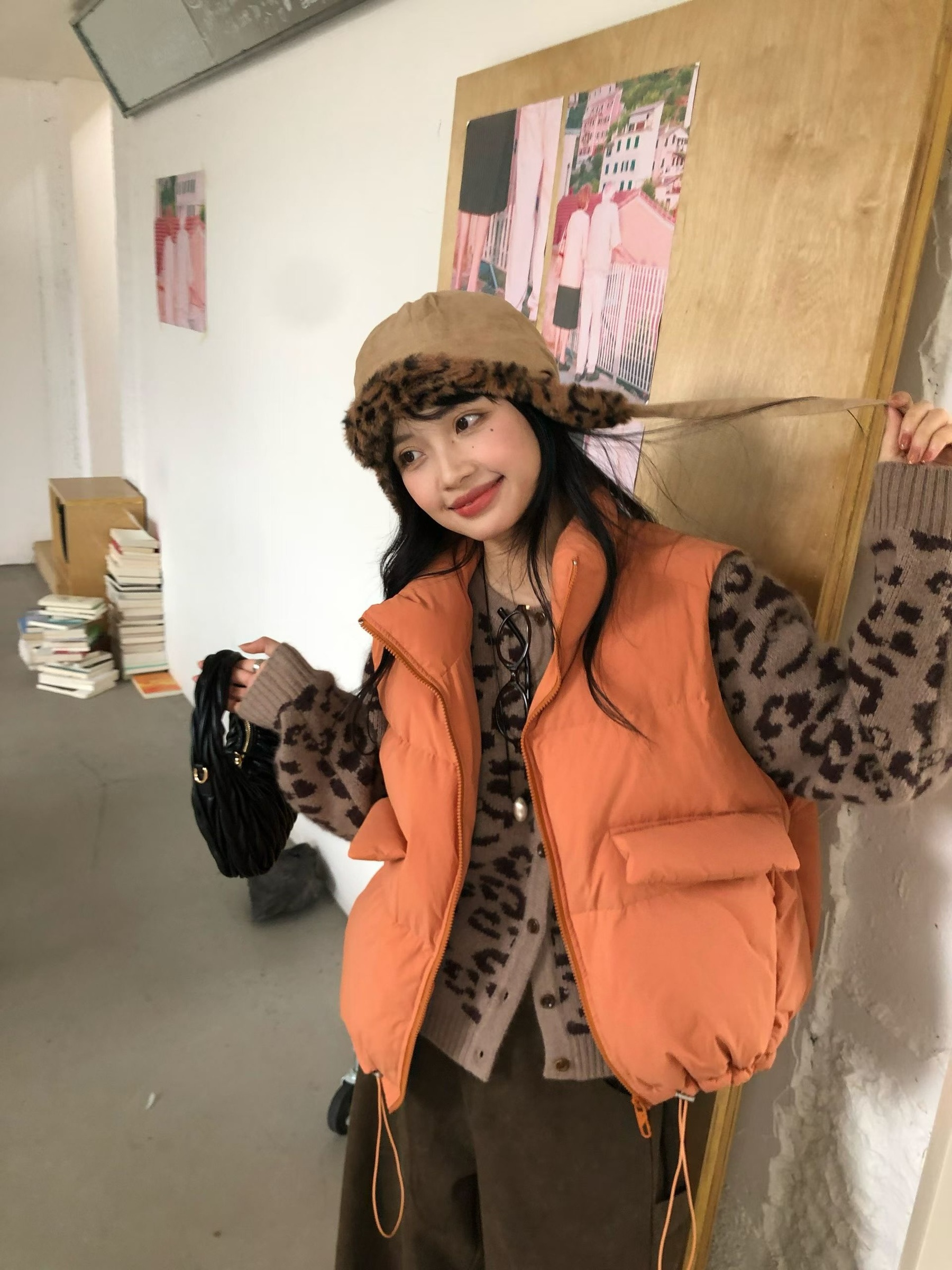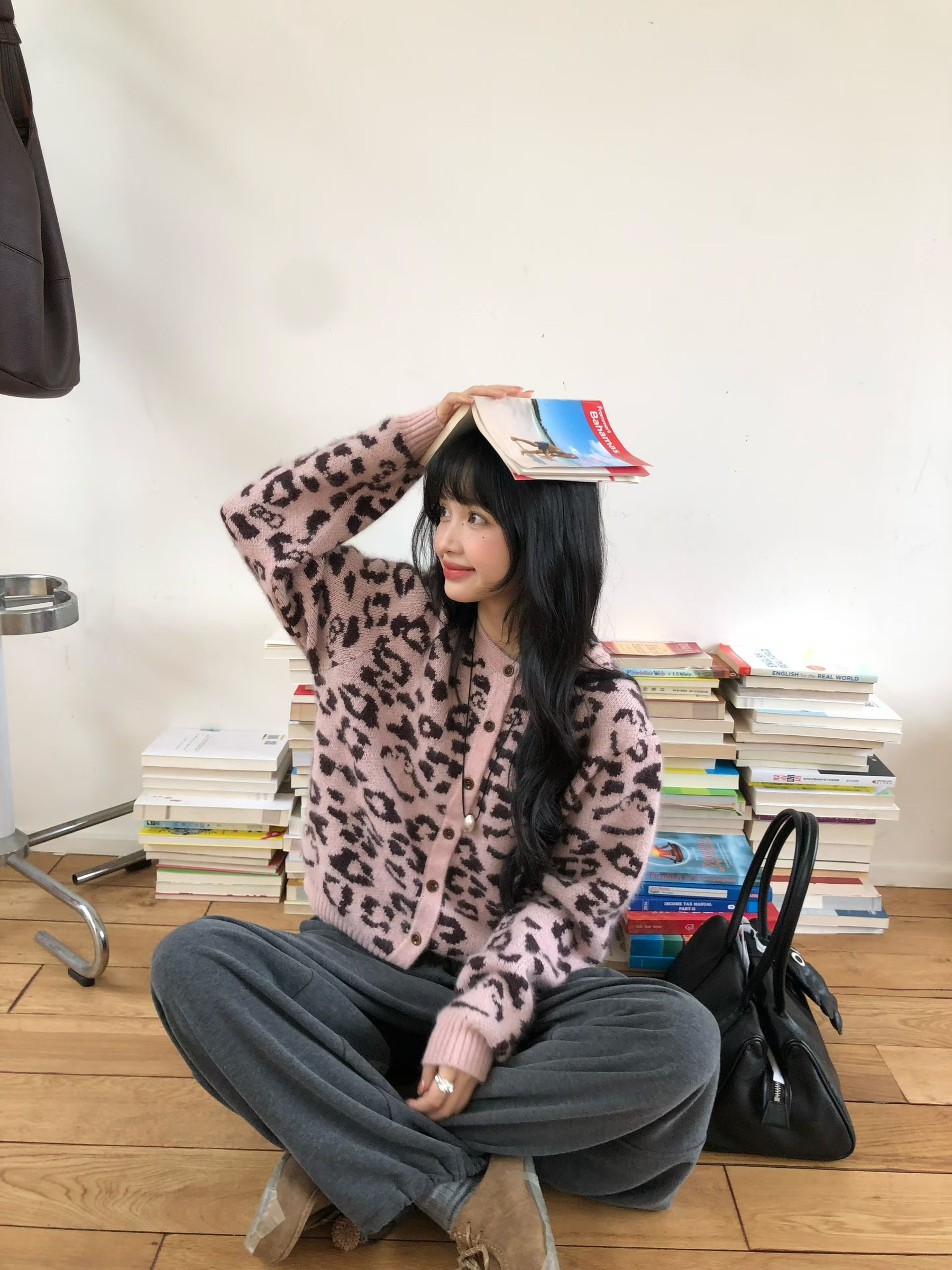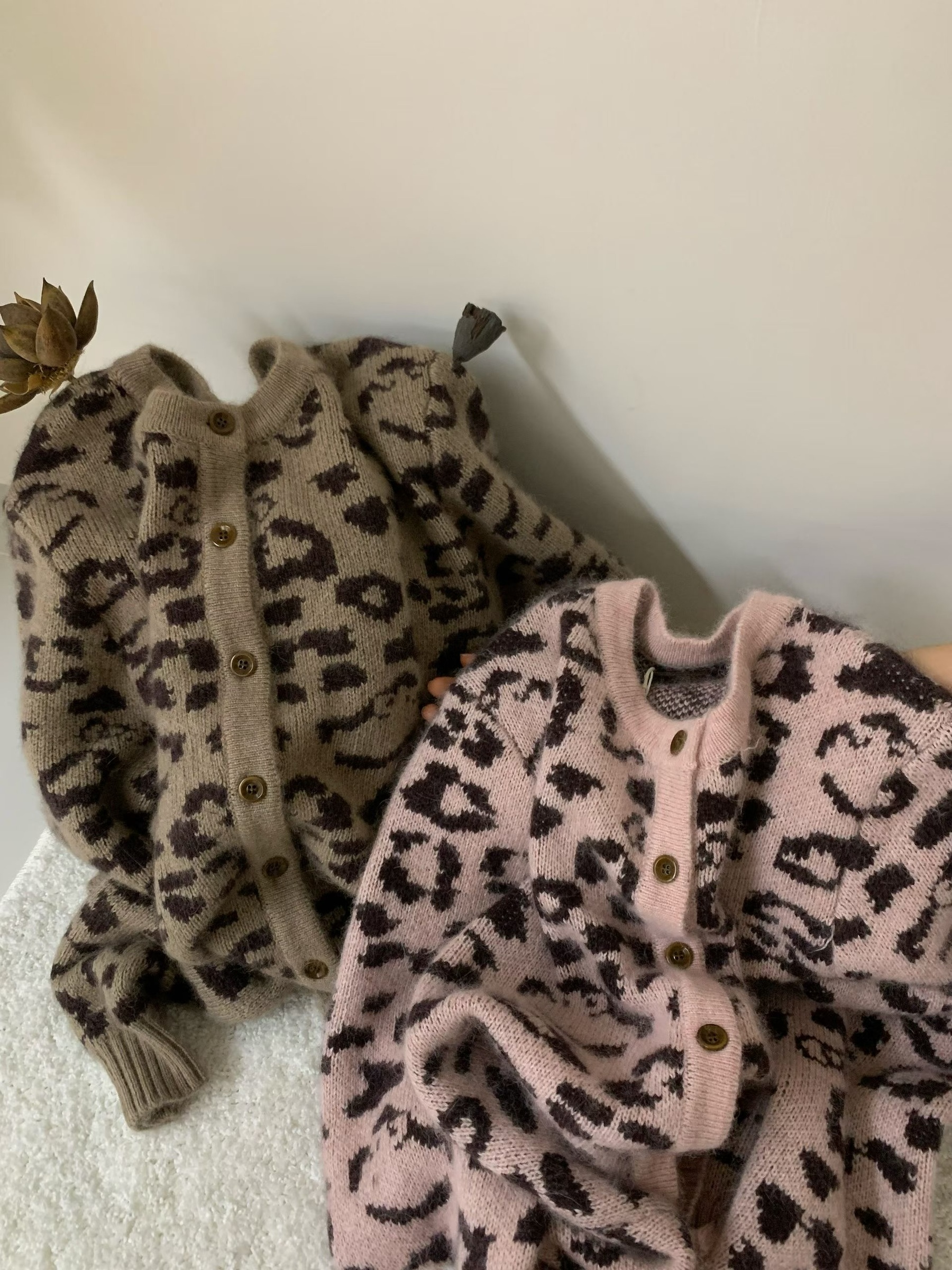 zaw891#正韓羊駝絨豹紋毛衣開衫(2色)
