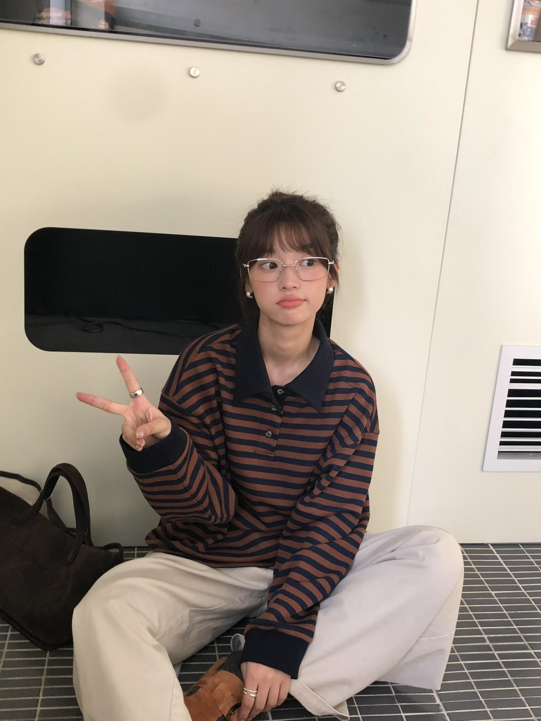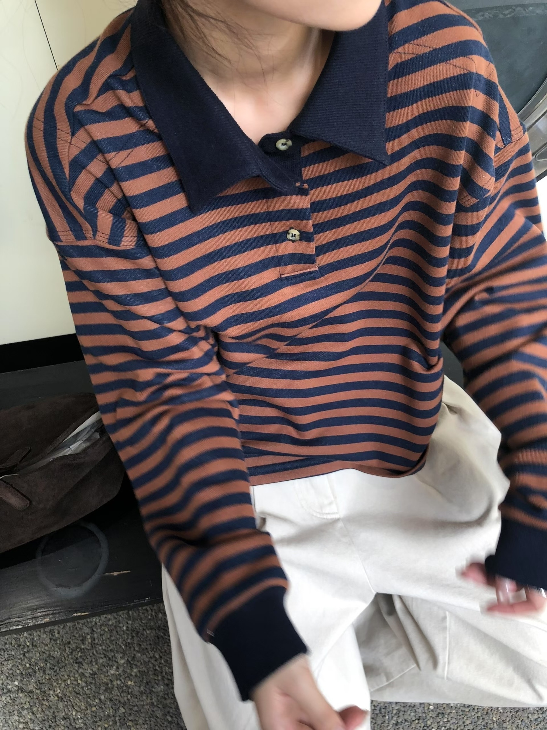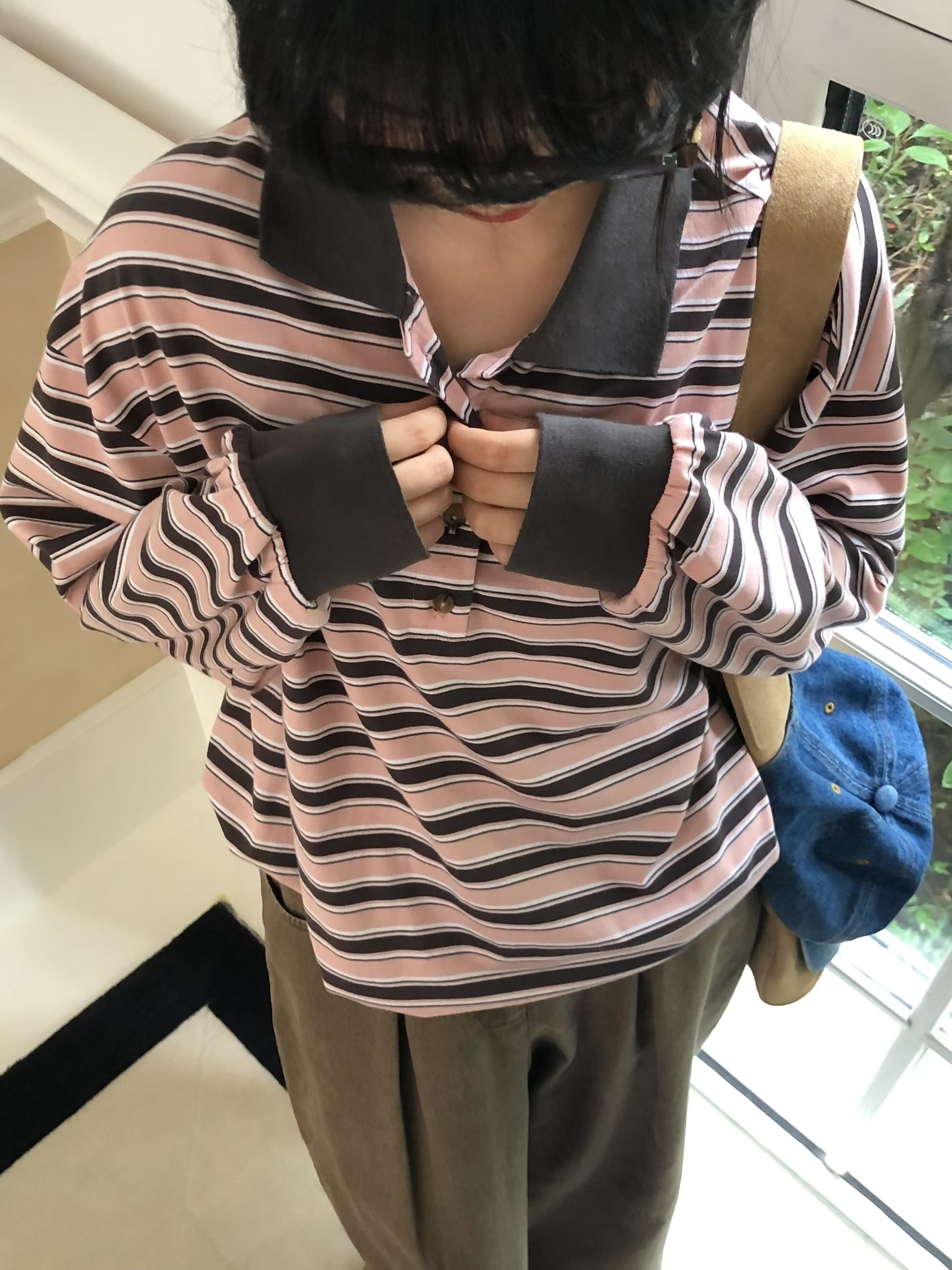 正韓 Miu系條紋撞色polo 衛衣(2色)