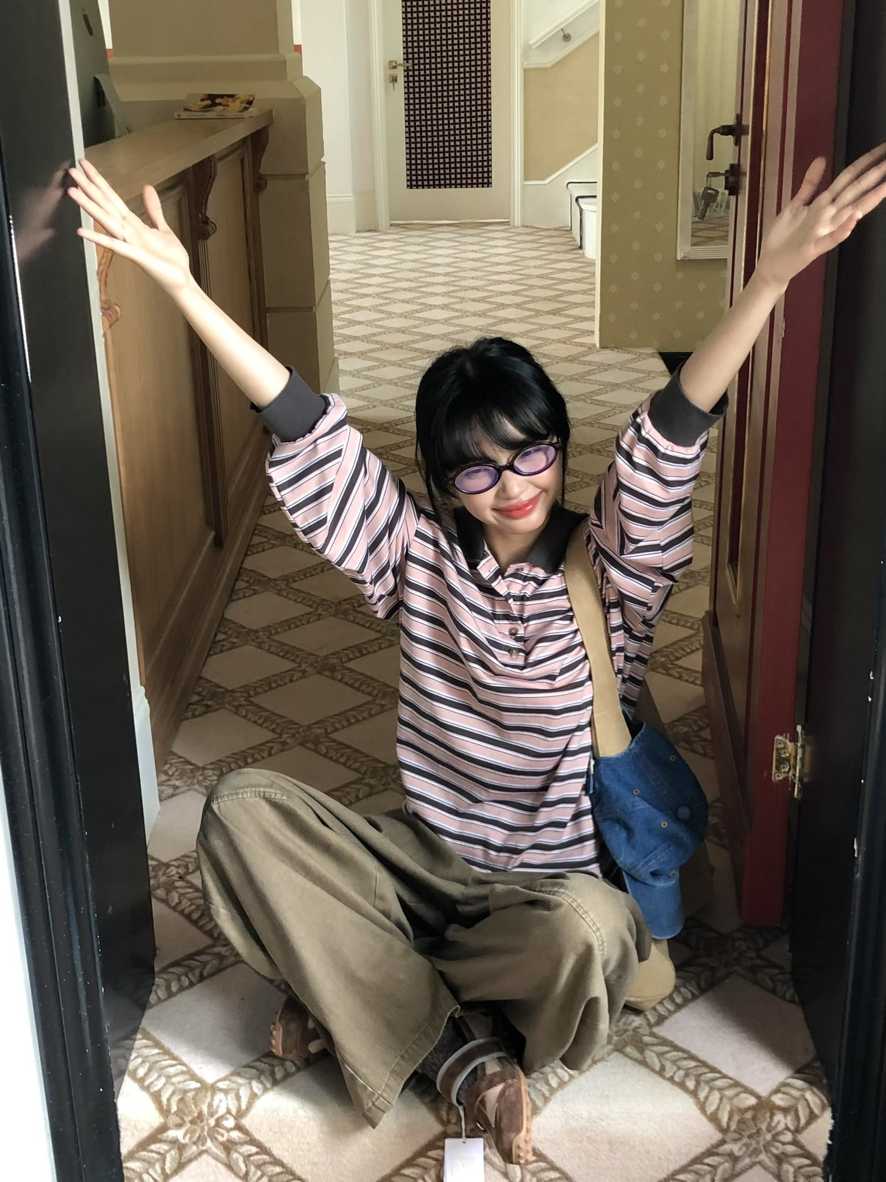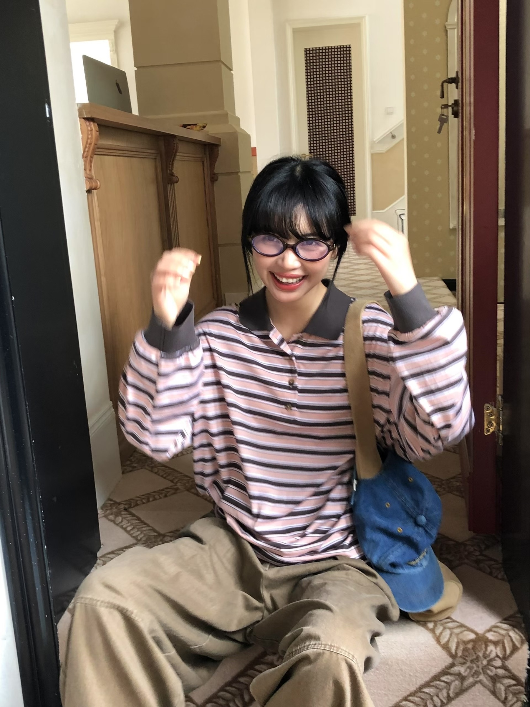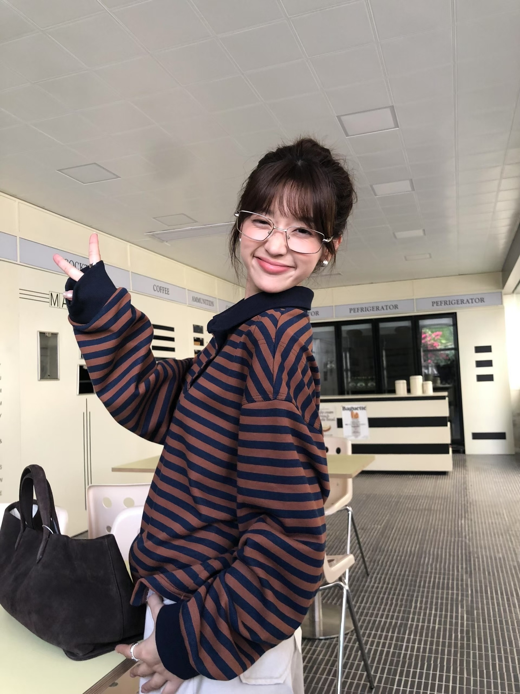 正韓 Miu系條紋撞色polo 衛衣(2色)