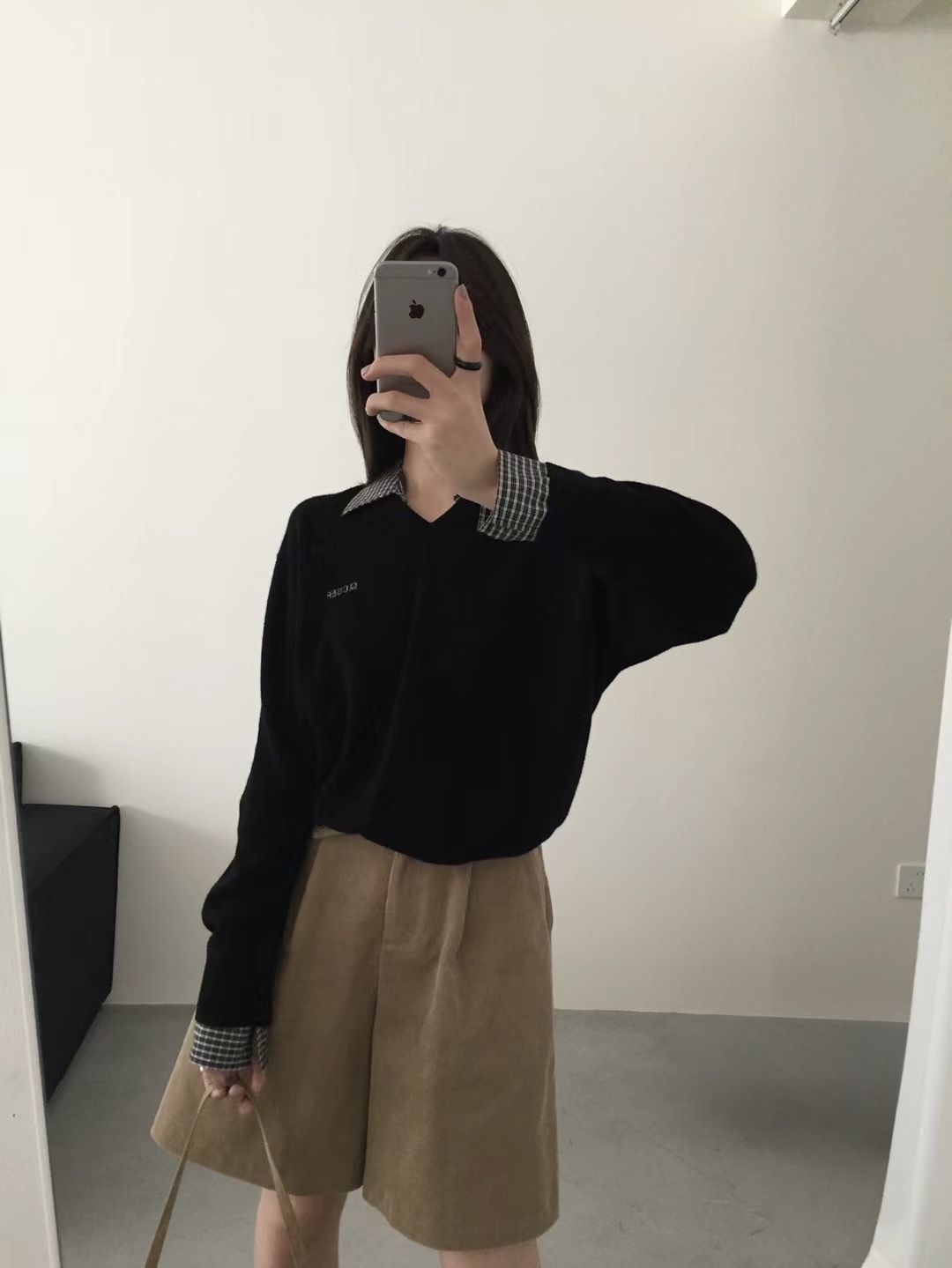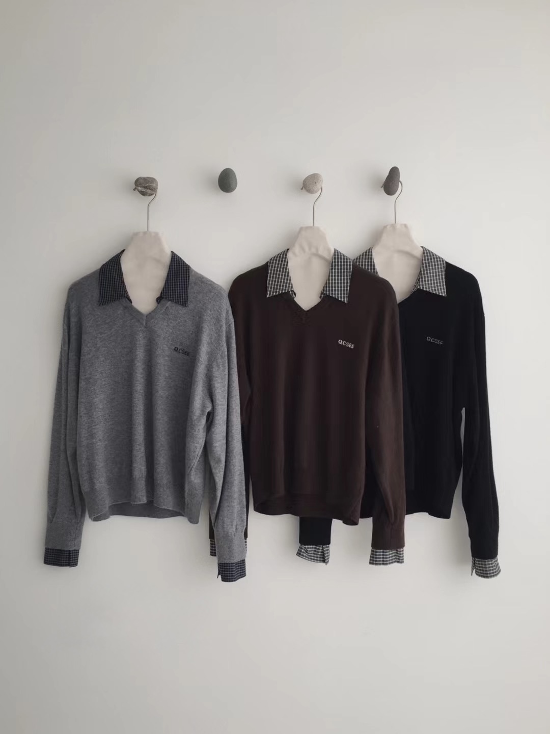 67326# 正韓韓妞推薦拼接假兩件針織上衣(3色)