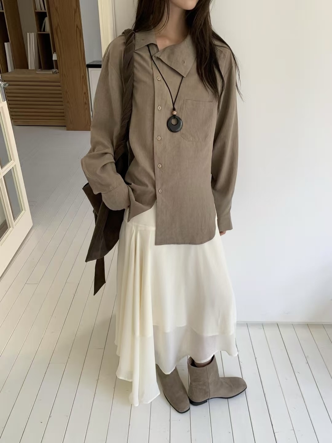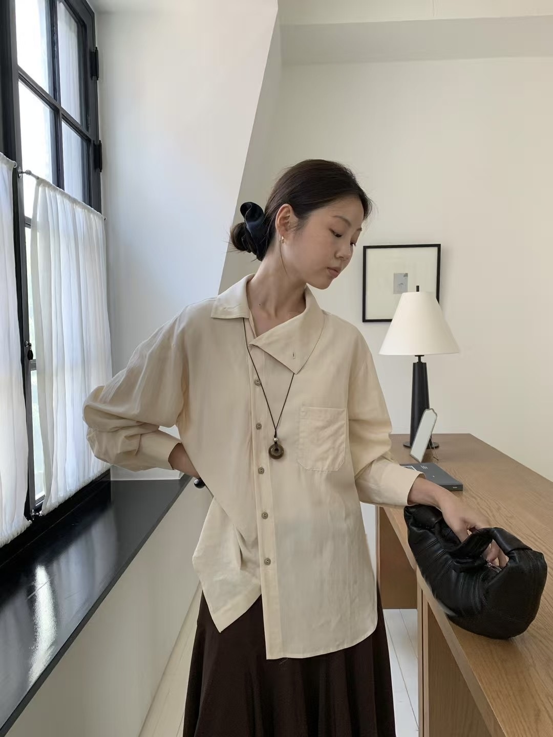 9142#正韓高級鬆弛感立領設計襯衫(3色)